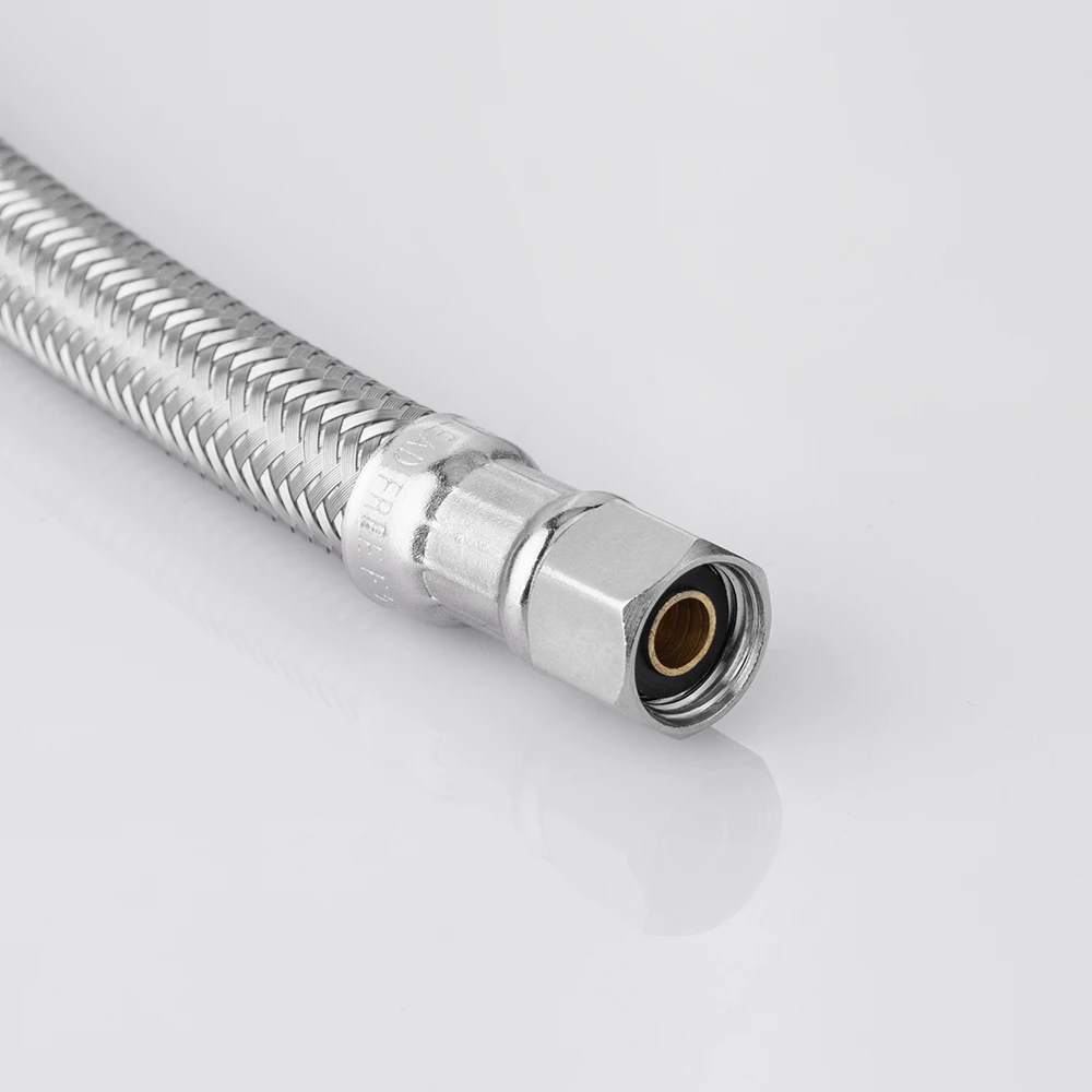 أنبوب مرن حديث من الفولاذ المقاوم للصدأ مجدول، للاستخدام في المطبخ، مطابق لمعيار NSF 61/ANSI 372 الخاص بمياه الشرب، يتحمل ضغط 10 بار، 5 سنوات أو أكثر
