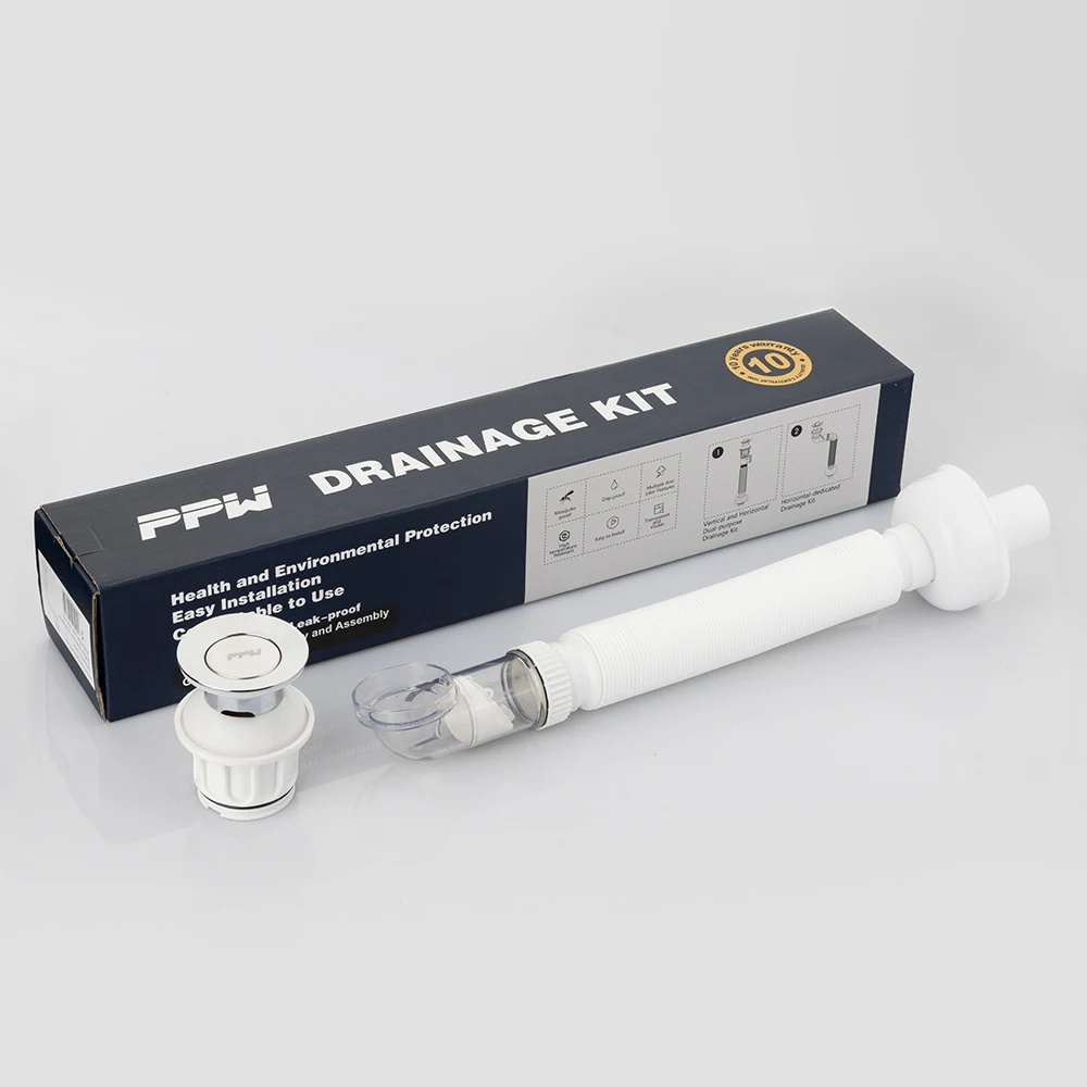 Съвременно PPW CM2306A Водопроводна тръба Бяла изкачаща се запушалка с отводен отвор с 10-годишна гаранция, щипка за мивка в банята, функция бутане, филтър за душ
