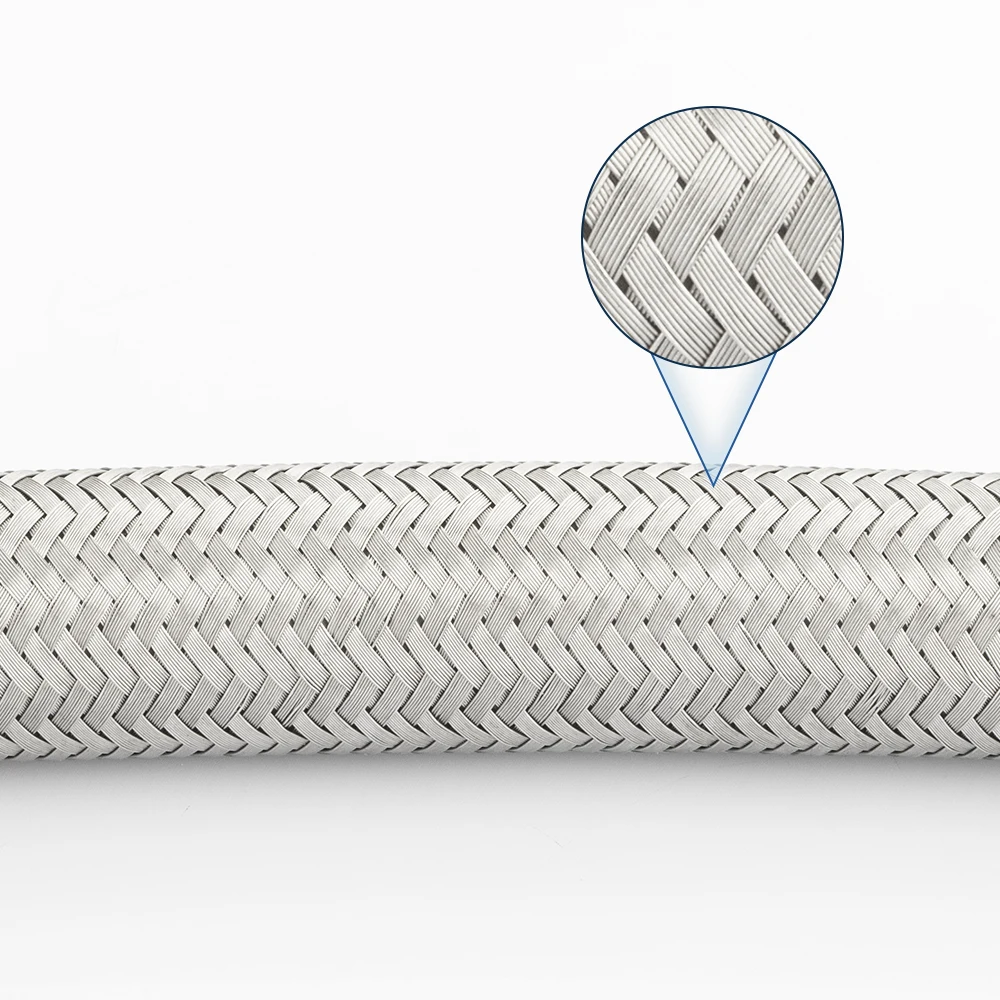 The stainless steel braided exterior of this kitchen water plumbing hose provides exceptional mechanical protection and pressure resistance. The braided design distributes stress evenly across the hose surface, preventing localized wear and extending operational lifespan significantly beyond conventional rubber or plastic alternatives. This construction methodology also enhances flexibility while maintaining structural integrity, allowing for complex routing configurations without compromising performance.
