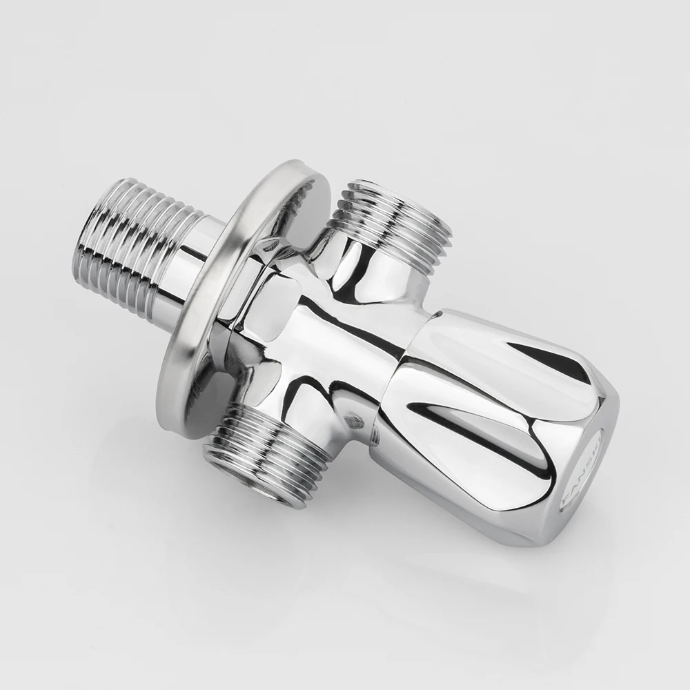Robinet d'angle en laiton, un entrée – deux sorties, finition chromée, vanne hydraulique de répartition d’eau, PN10, joint d’étanchéité en FKM, pour machine à laver et raccord de toilettes