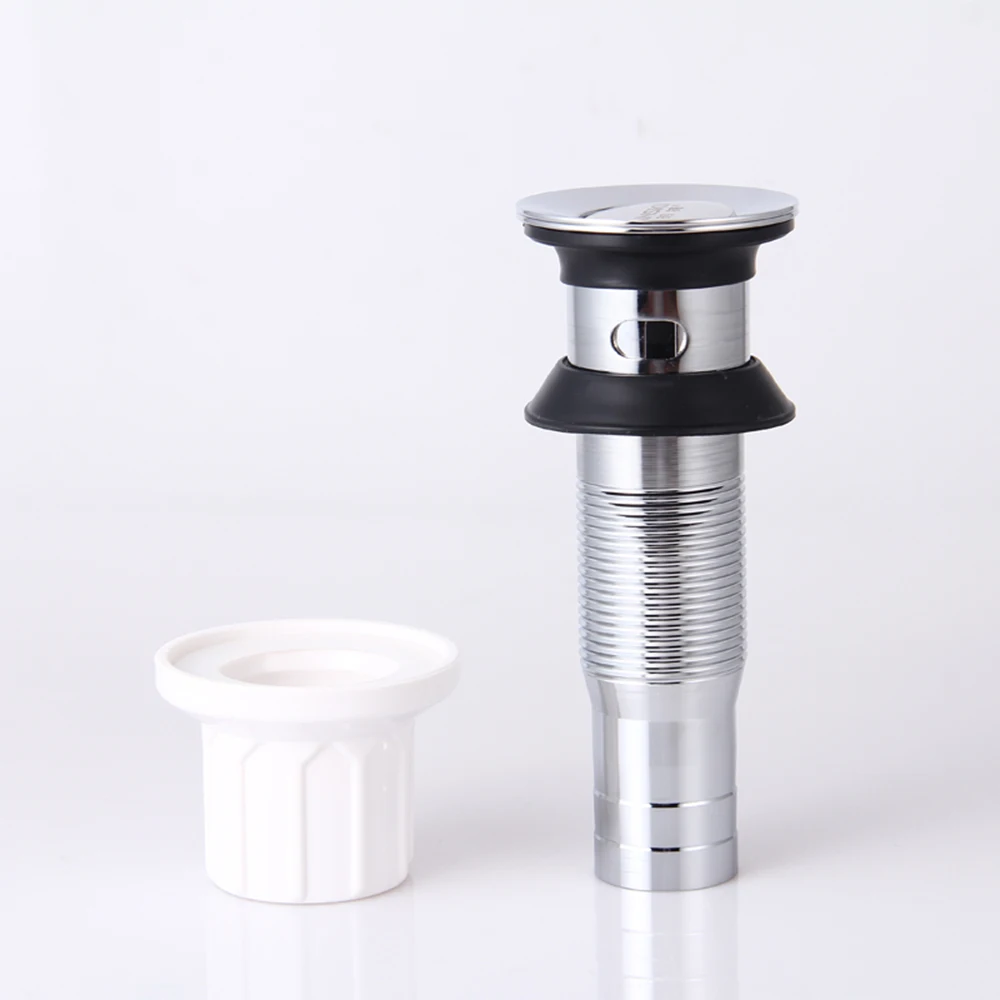 Déanann na cumais comhtháiteachta leis an mbunaitín a dhéanamh den mhaisín cruinnithe seo, Pop-Up Drain Accessory de Stainlis éadach Nua-aimseartha do Thaighdeil do Bhunaitíní Lampa do Bhunaitíní Strainer Pop-Up Stopper do Sheomra Folctha, go háirithe freagrach do dhearthóirí seomra folctha óstán nua-aimseartha áit a bhfuil díon bunaitín gan trastomhas riachtanach. Díríonn an chuid strainer ar ghabháil slí do chlochán agus do réir a chéile agus uisce a rith go héifeachtach, ag coscú ar bhlacáil a d’fhéadfadh oibríochtaí an óstáin agus taitneamh an aoi a mheas. Comhlíonann an próifíl ghlan ealaíne na seomra folctha nua-aimseartha agus soláthraíonn sé feidhmchláir praiticiúla a éilítear ag proifisiúnaigh ospidéalachta.