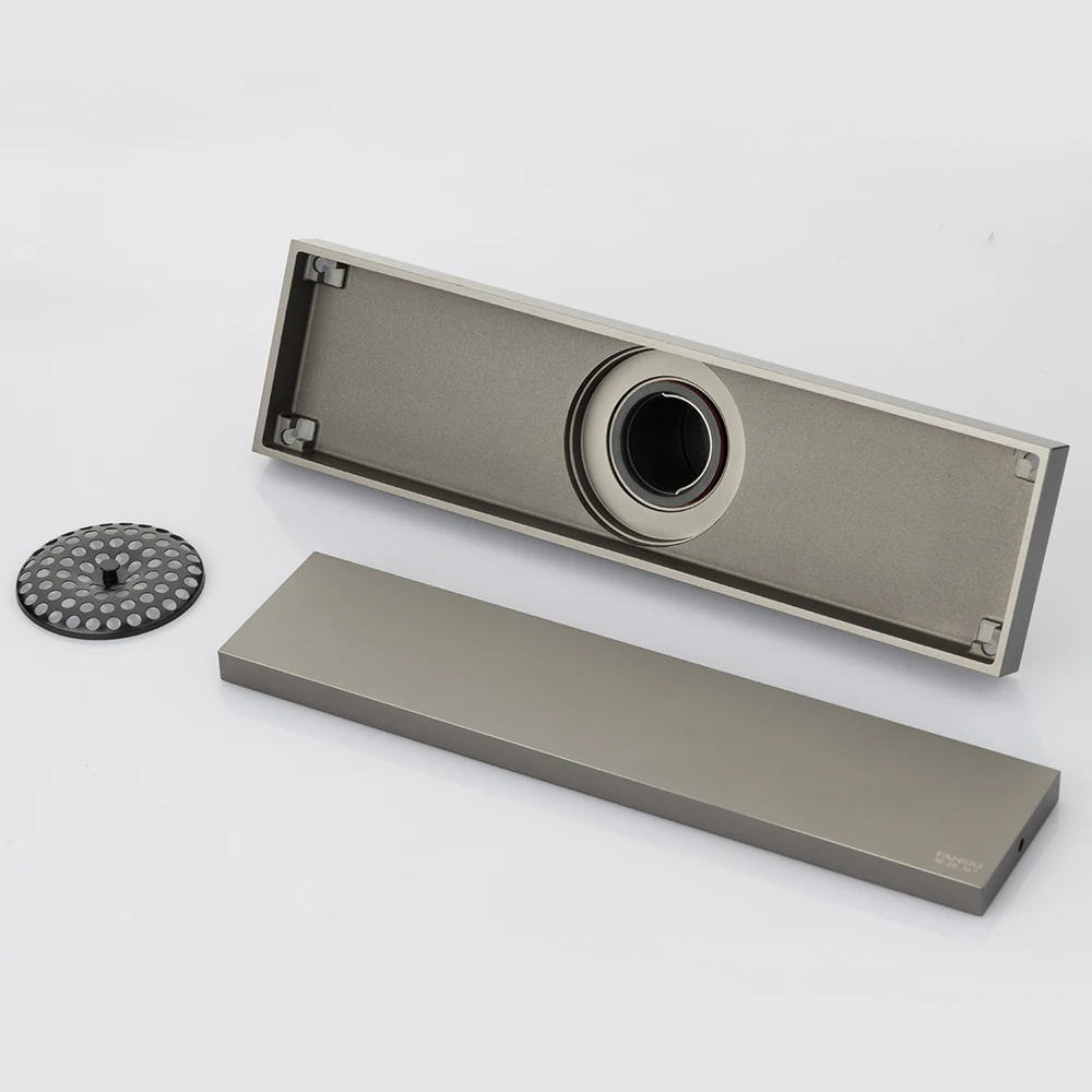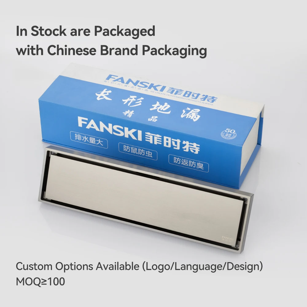 FANSKI 80*300 mm Oranž siva skrivena nevidljiva pločica za tuš, ravni mesingani odvod za pod, moderni pravokutni dizajn za kupaonicu protiv mirisa