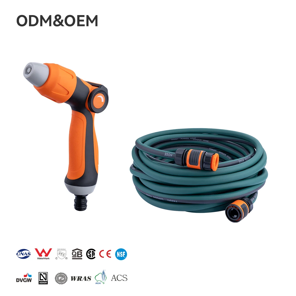 Kertvízcső, rugalmas vízvezeték-kertvízcső, 10 m / 15 m / 20 m nyomásálló cső autómossáshoz gyorscsatlakozós illesztéssel és vízpisztollyal