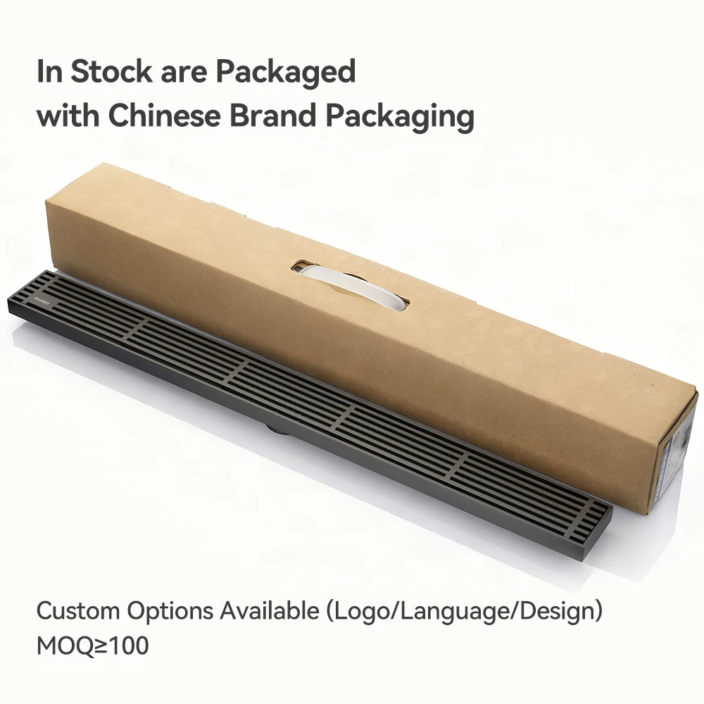 FANSKI 57*600mm Bathroom Electroplated Anti-Corrosion Anti Smell Stainless Steel Gun Metal Color Floor Drain for Shower Room