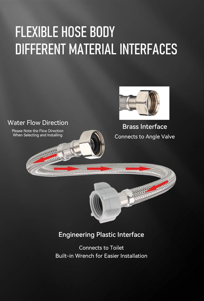 FANSKI in Stock F1/2 X M1/2 SUS 304 Braided Flexible Hose with Brass Male Nut Extension Plumbing Hose Faucet Supply Connector