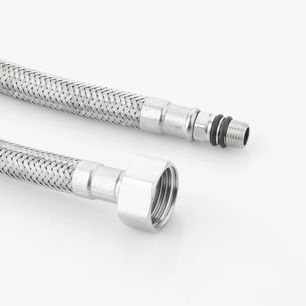 FANSKI Stock F1/2XM10X1 SUS 304 Braided Flexible Hose Stainless Steel Male Nut Extension Plumbing Hose Faucet Supply Bathroom