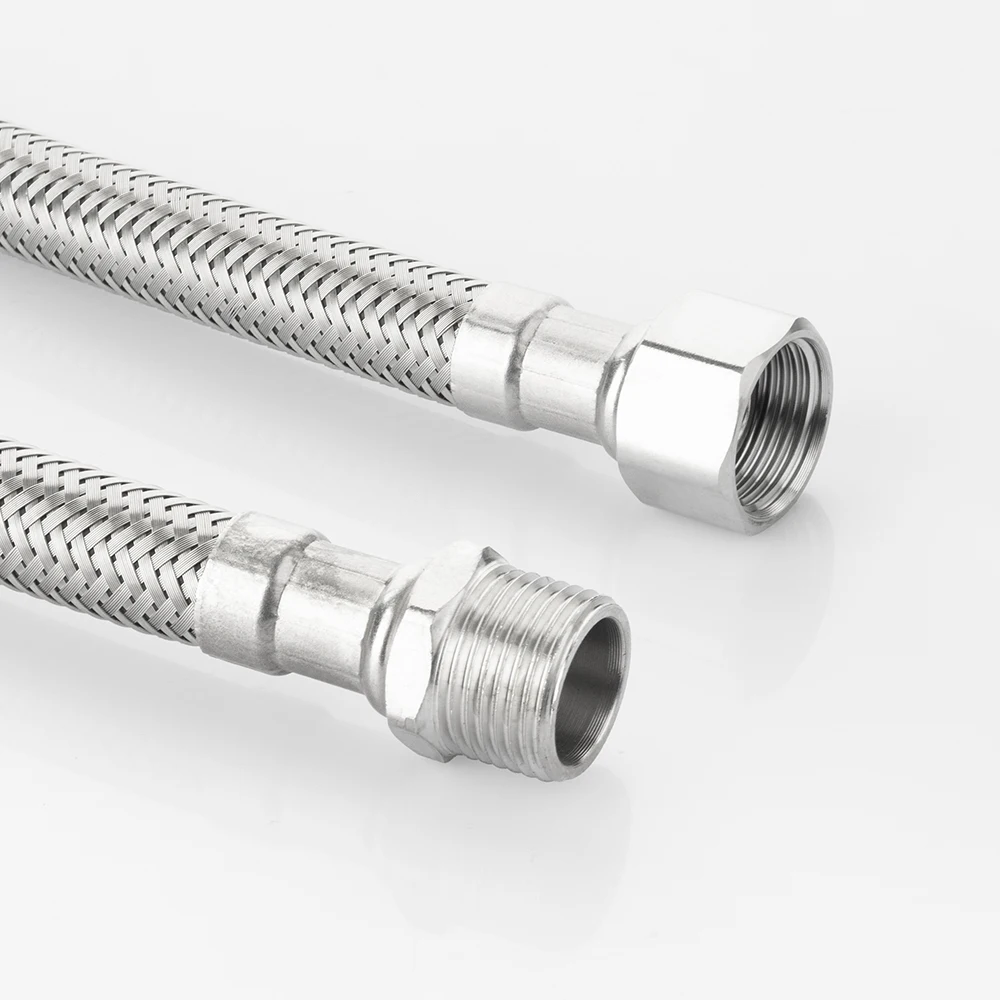 FANSKI Stock SUS 304 Braided Flexible Hose F3/8xM3/8 Stainless Steel Male Nut Extension Plumbing Faucet Supply Modern Kitchen