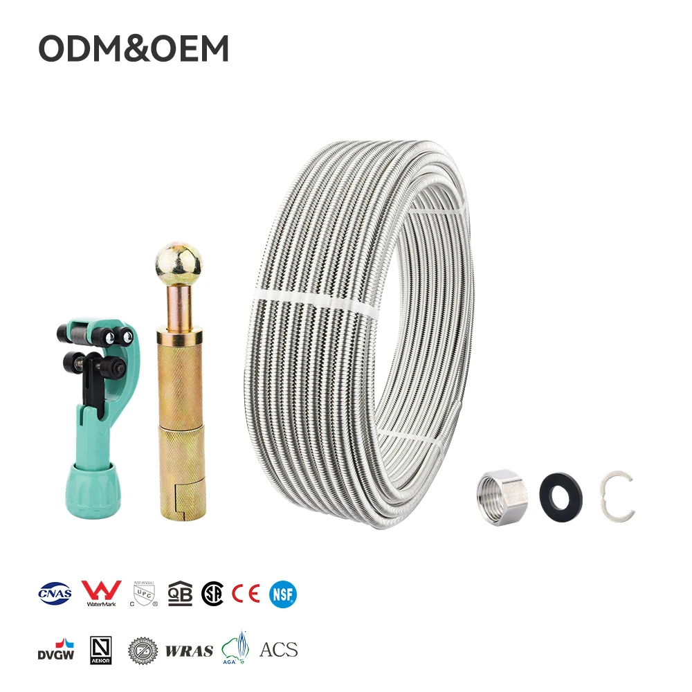 Hgh Quality 50 Meters Stainless Steel Corrugated Hose ODM Plumbing Hose Equipped with a Tool That Allows Cutting to Any Length