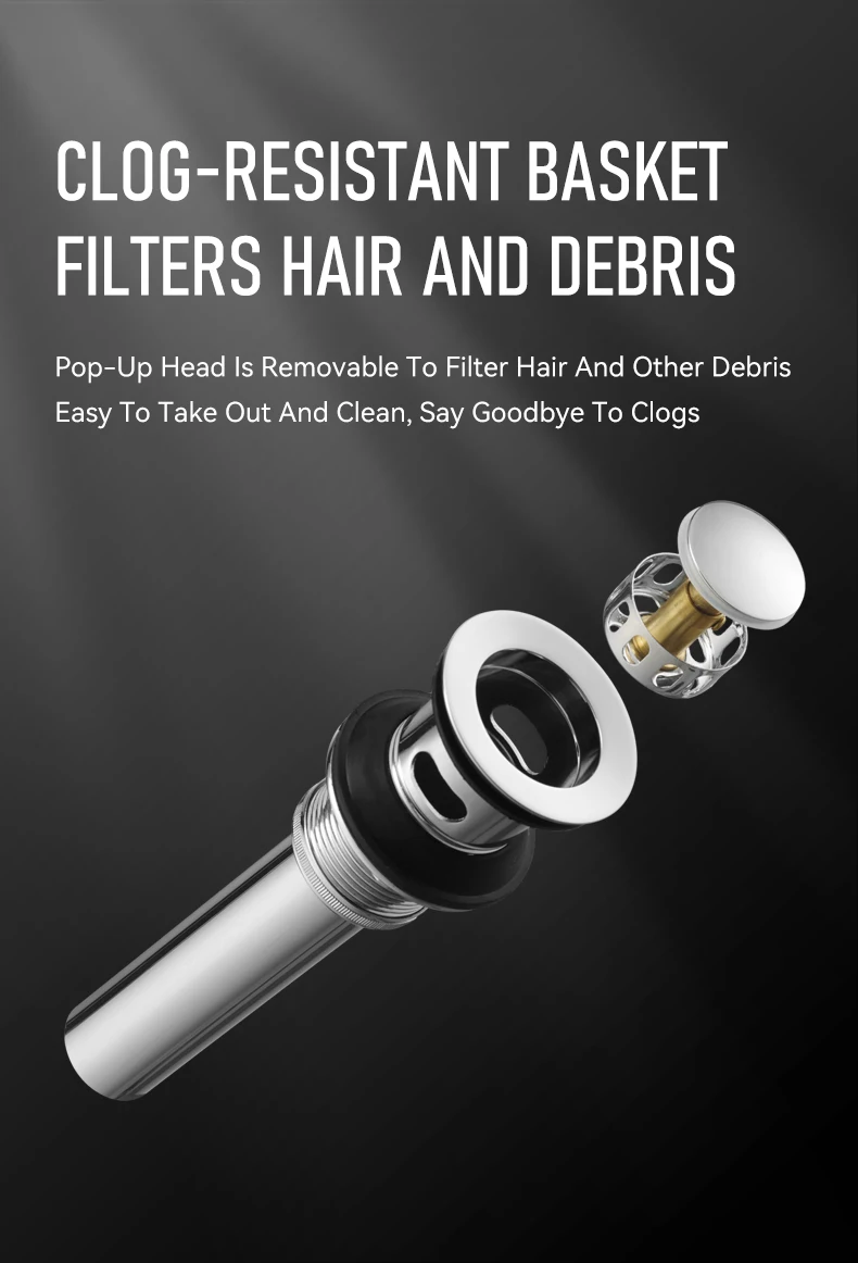 In Stock Modern Style Brass Click Clack Pop up Bathroom Sink Drain Basin Wastes With Overflow Brass Drain for Hotel Bathroom