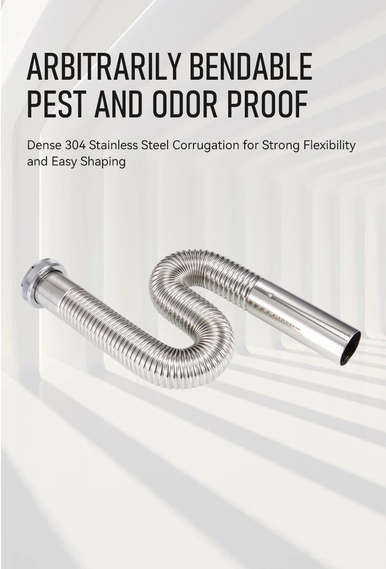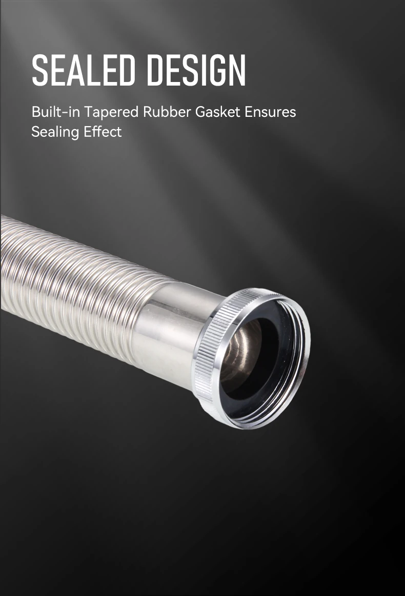 In Stock Stainless Steel Polished Joint Flex Spring Water S-Trap Drain Hose Flexible Corrosion-Resistant 50/80cm Plumbing Hose