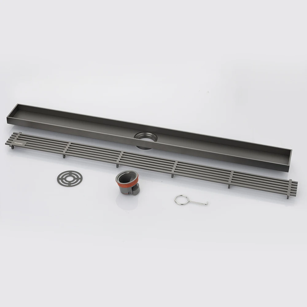 Modern 57*600mm Bathroom Electroplated Anti-Corrosion Anti Smell Stainless Steel Gun Metal Color Floor Drain for Shower Room