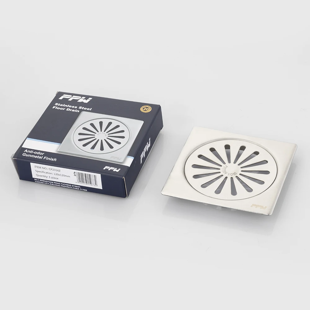 PPW Stainless Steel Square Floor Drain Chrome Electroplating High Quality Bathroom Sink Strainer Odor-Proof Anti-Corrosion