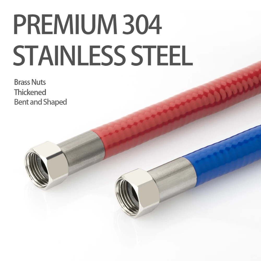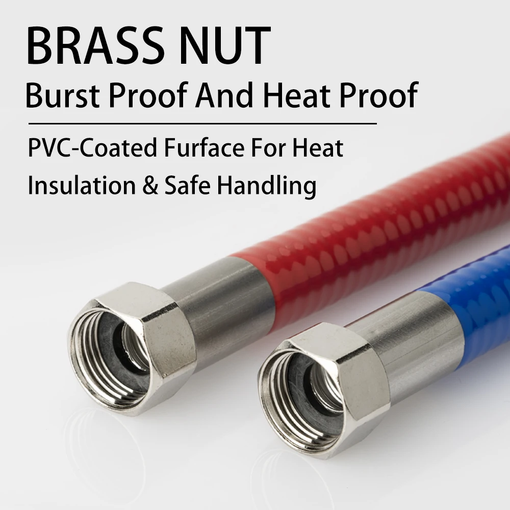 (Red) PVC Coated Corrugated Hose Flexible Stainless Steel PVC Plated Hose Pipe for Water Heat Insulation Shower Plumbing Hoses