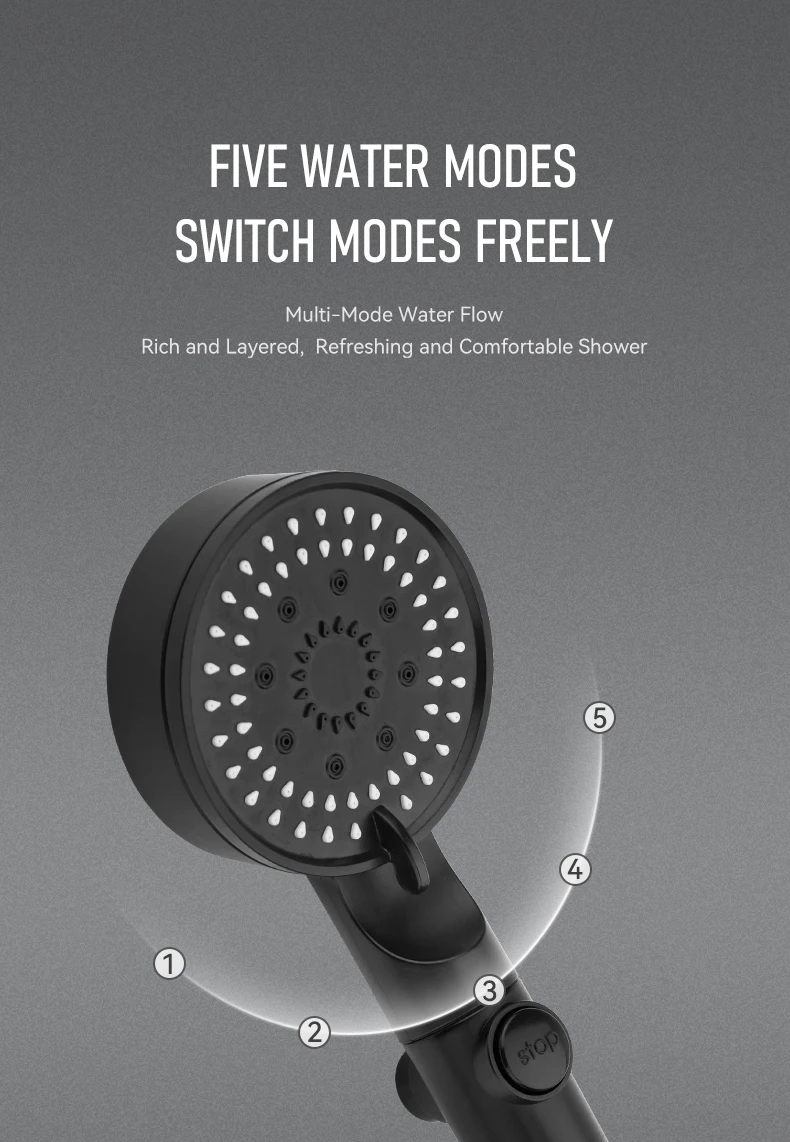 Stock Electroplated ABS Handheld 5-Function High Pressure Water Saving Shower Head Boosting Spray Head Shower Hose Bathroom Bath