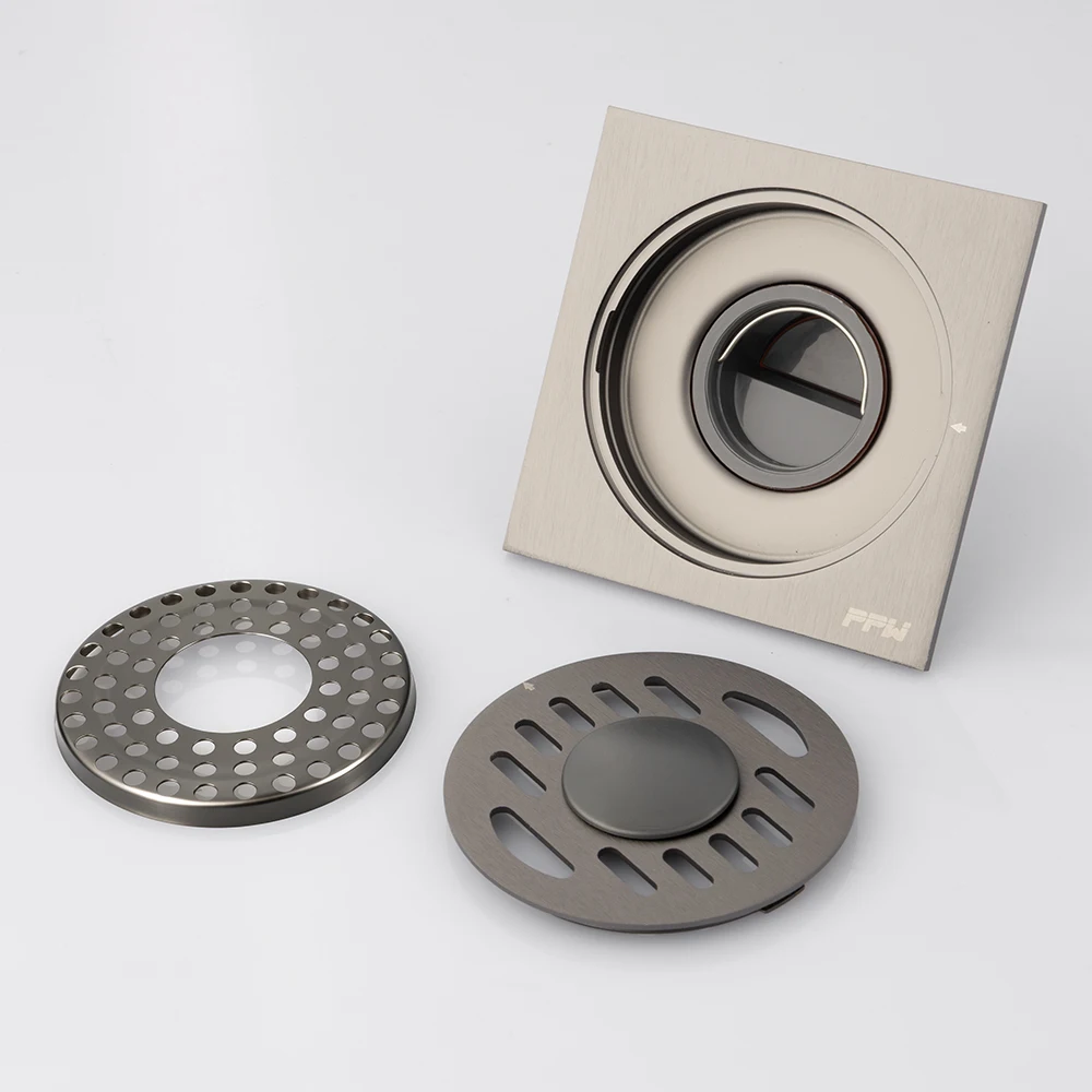 PPW Modern rostfria stålets fyrkantiga golvbrunn i badrummet, avloppsgaller för tvättmaskin, smutsfilter, mot korrosion och luktskydd har sofistikerad teknik som samtidigt löser flera avloppsproblem. Den fyrkantiga geometriska formen ger optimalt vattenflöde samtidigt som den erbjuder överlägsen filtrering av smuts. Konstruerad i förstklassigt rostfritt stål som ger exceptionell korrosionsbeständighet och säkerställer decennier av tillförlitlig prestanda även i krävande miljöer.